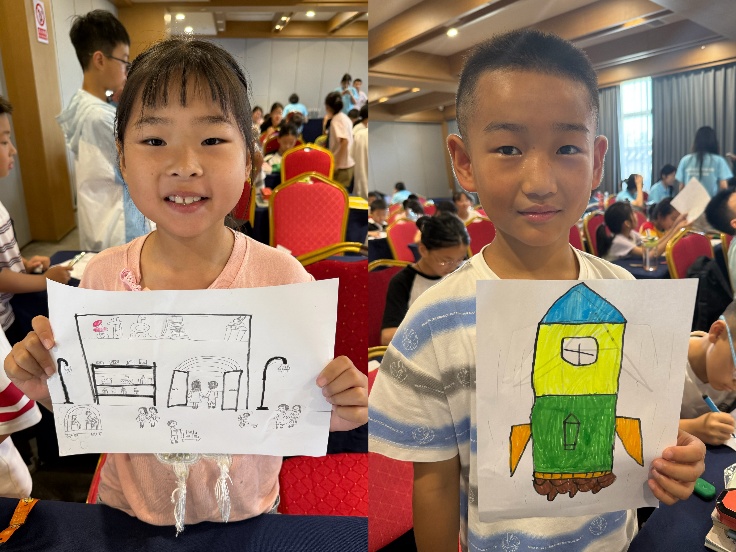 繪畫活動(dòng)結(jié)束后,隊(duì)員們邀請(qǐng)小營(yíng)員們分享畫紙上的作品內(nèi)容與心中的夢(mèng)想。其中有兩名小營(yíng)員說道: