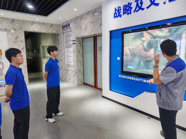 全景初探,感知企業(yè)脈動 安全培訓(xùn)結(jié)束后,實踐隊在公司技術(shù)部負責(zé)人詹春茂的帶領(lǐng)下,開始了對金士頓軸承的全面認知之旅。詹春茂首先詳細介紹了公司的發(fā)展歷程、核心業(yè)務(wù)板塊以及在軸承及關(guān)聯(lián)領(lǐng)域的技術(shù)特色與市場競爭力。他深入淺出的講解,使隊員們對金士頓科技的戰(zhàn)略定位和行業(yè)影響力有了宏觀了解。