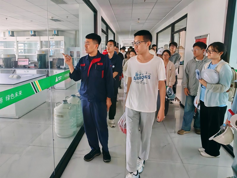 在訪談部分,實踐隊隊長侯羽星就“金能化學如何實現雙碳目標下石油煉化行業綠色轉型”提出問題。講解員表示:“金能化學在不斷改進生產方法如光能發電、使用氫能、減少天然氣的使用提高能源利用,實現產業升級與轉型。”綠色工廠詮釋可持續發展擔當,一線工匠精神令人動容。此次金能化學的參觀學習,既讓實踐隊員們對化工行業的綠色未來有了更清晰的認知,也為他們將專業知識與產業需求相結合指明了方向——無論是投身技術研發攻克減碳難題,還是立足生產一線踐行精細化管理,都能在“雙碳”戰略的浪潮中找到屬于自己的職業坐標。這場實踐,不僅是一次行業認知的深化,更是一次關于責任與成長的深刻啟蒙。