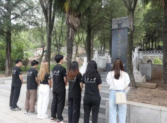 當(dāng)日上午,實踐隊抵達(dá)商南縣烈士陵園。該陵園始建于1960年7月,沿山勢自南向北呈階梯式布局。隊員們沿青石臺階緩步而上,在刻有“商南英烈千古流芳”的烈士紀(jì)念墻前駐足瞻仰,深切感悟革命先烈勇往直前的精神力量。