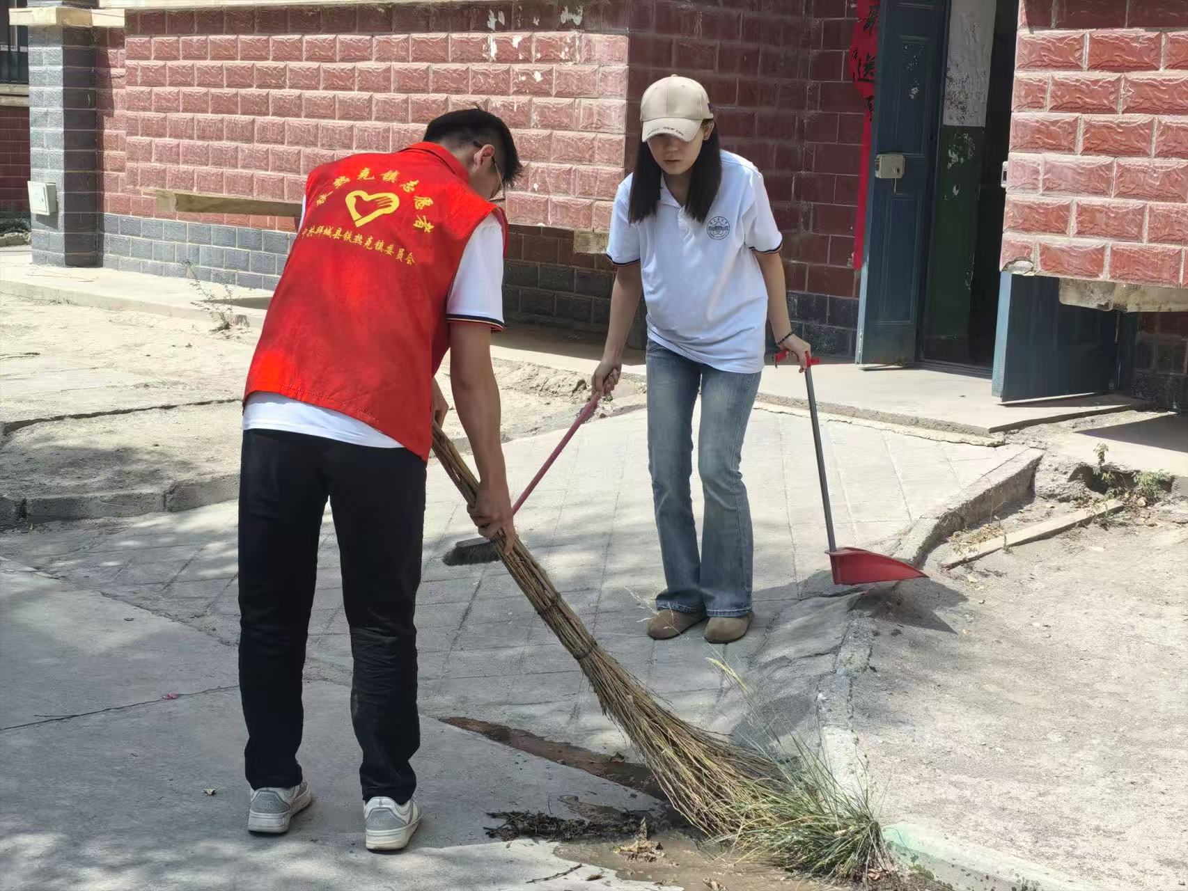 實(shí)踐團(tuán)隊(duì)打掃居民街道(攝/于思佳 阿婭拉·烏拉力別克 )