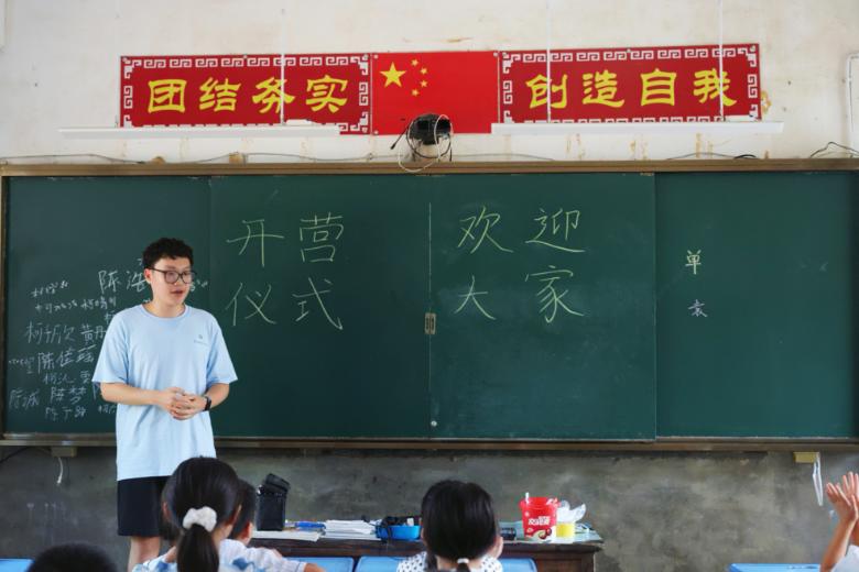 多彩大學生網十堰7月8日電(通訊員 胡高瑞)7月7日上午,華中師范大學學生未來教育家協會綠芽實踐隊(以下簡稱綠芽實踐隊)暑期實踐開營儀式在江西省九江市瑞昌市肇陳鎮希望小學舉行。共青團瑞昌市委書記周群、肇陳鎮人民政府團委干事朱必經、希望小學校長劉寶珠出席,綠芽實踐隊全體隊員與希望小學學生參加。儀式由綠芽實踐隊隊長吉天昊主持。