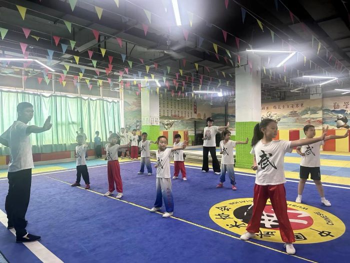 “出拳要如‘矢石之疾’,收勢(shì)當(dāng)似‘江海之靜’。”在與學(xué)員們共同練習(xí)時(shí),武術(shù)教練的點(diǎn)撥讓隊(duì)員們豁然開朗。實(shí)踐隊(duì)隊(duì)員們跟著孩子們?cè)R步、練沖拳,親身體驗(yàn)“腰馬合一”的發(fā)力技巧。有隊(duì)員發(fā)現(xiàn),看似簡(jiǎn)單的“震腳”動(dòng)作,實(shí)則蘊(yùn)含著兵家“蓄勢(shì)而發(fā)”的智慧;而攻防轉(zhuǎn)換間的“動(dòng)靜結(jié)合”,恰是“以靜制動(dòng)”謀略的具象化。當(dāng)汗水浸濕衣衫,隊(duì)員們不再將武術(shù)視為單純的技巧訓(xùn)練,而是感受到每一個(gè)動(dòng)作背后的文化重量——這種親身體驗(yàn),遠(yuǎn)比書本講解更能讓青少年理解兵家文化的實(shí)踐意義。