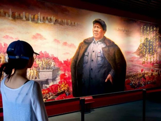 團(tuán)隊(duì)成員在總統(tǒng)府南京解放油畫前 吳蘇寧攝