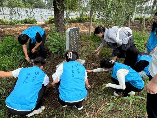 實踐隊成員為陳路杰烈士掃墓,清理墓碑周圍雜草。教師教育學院暑期實踐隊通訊員 攝