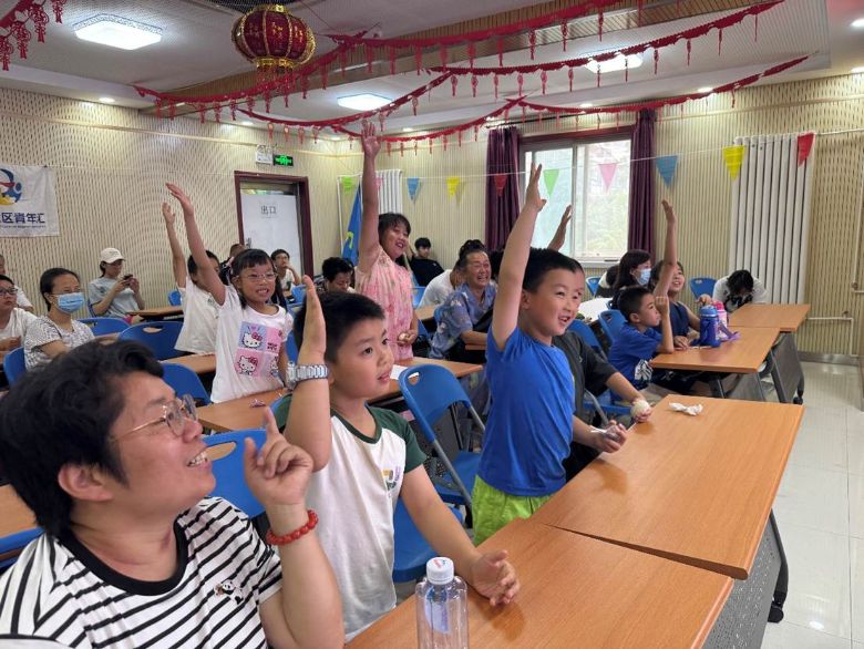 圖為志愿者在金榜園社區(qū)進(jìn)行知識(shí)搶答環(huán)節(jié),孩子們積極舉手搶答。梁楚綰 供圖