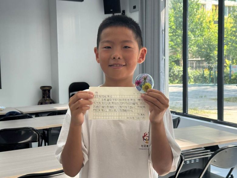 圖為龍騰六苑社區(qū)的一名小朋友在課程的最后一天為宣講團(tuán)的志愿者們寫的小紙條,表達(dá)了對(duì)本次宣講活動(dòng)的感激與不舍。梁楚綰 供圖
