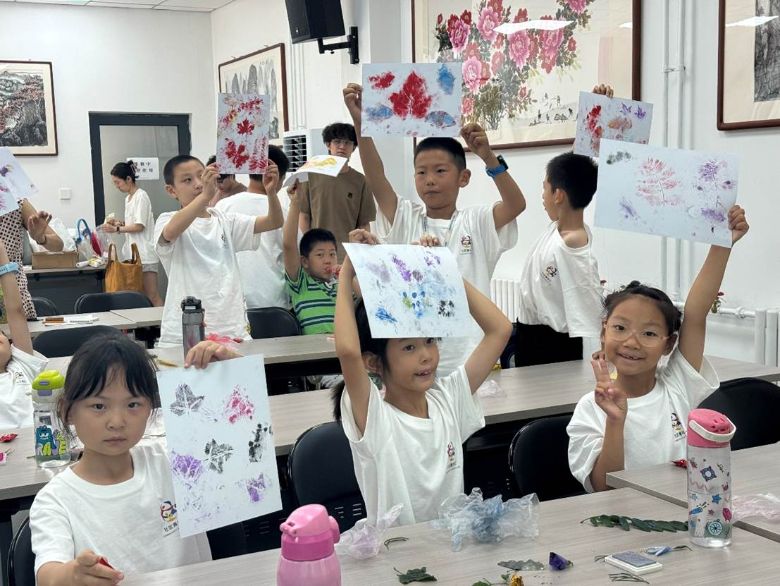圖為龍騰六苑社區(qū)的孩子們展示自己的拓印作品。梁楚綰 供圖