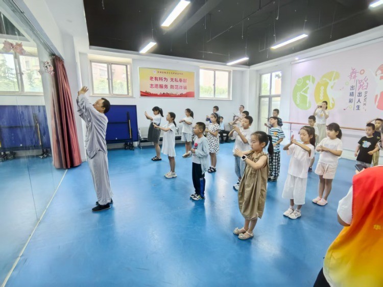 緊接著,太極老師作為楊氏太極的傳人,通過理論與實踐相結合的生動的課堂,為孩子們介紹了太極的核心精神。生動的視頻介紹了太極非遺傳承的精神,舞蹈教室的太極實踐讓孩子們加深了理解。其中,支教隊隊員全程陪伴,在其中起到了引導的作用,發揮獨特的親和力,幫助孩子們深刻理解老師的課程。短暫的課程讓孩子們意猶未盡,回到教室后,不少孩子還在復習剛才的動作,討論著太極非遺的奧秘。