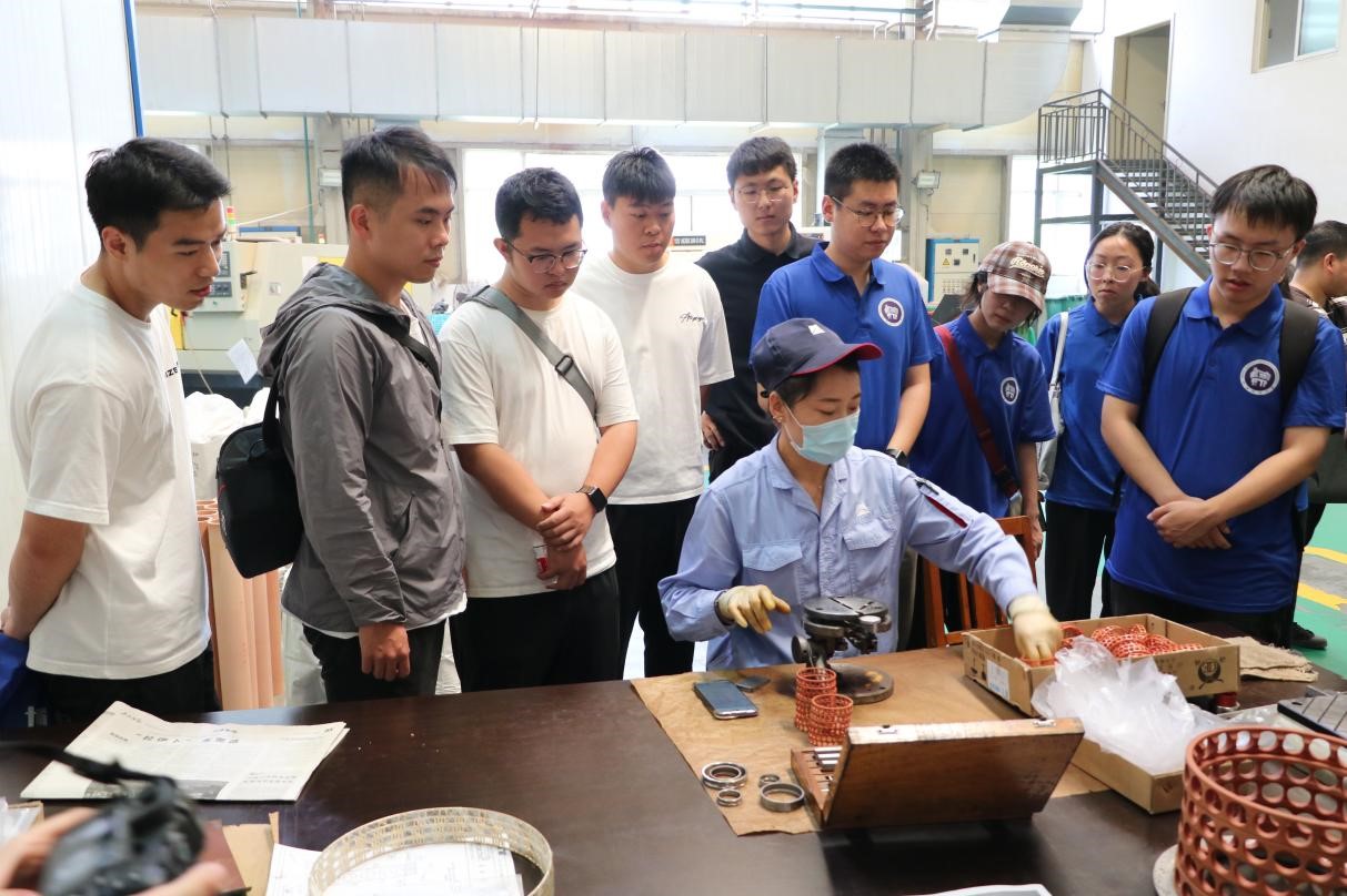 在交流探討后,實踐團隊前往軸研所高新區產業園開展實地考察。在技術人員的帶領下,團隊成員先后參觀了精密軸承制造車間和主軸制造部,系統觀摩了從原材料到成品的完整制造流程。自動化生產線的高效運轉、技術工人的精準操作,以及一個個精密軸承的誕生過程,讓同學們深刻感受到“中國制造”背后精益求精的技術追求。