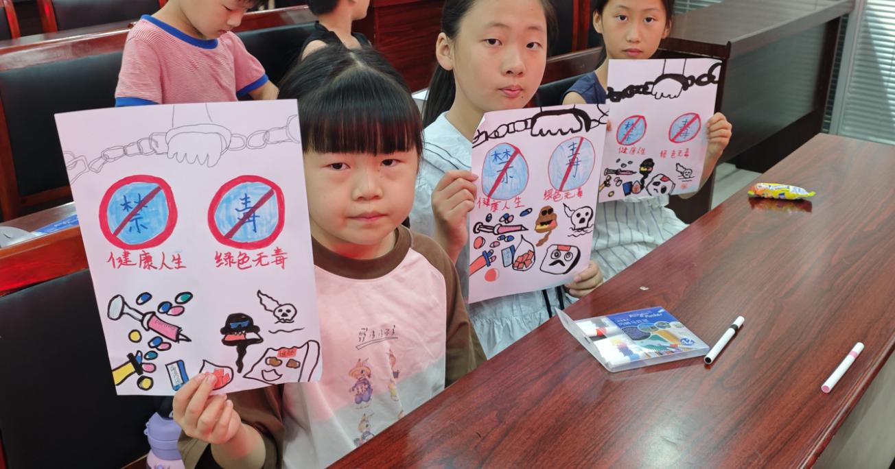 圖為社區小朋友們完成的禁毒繪畫 趙想通訊員攝