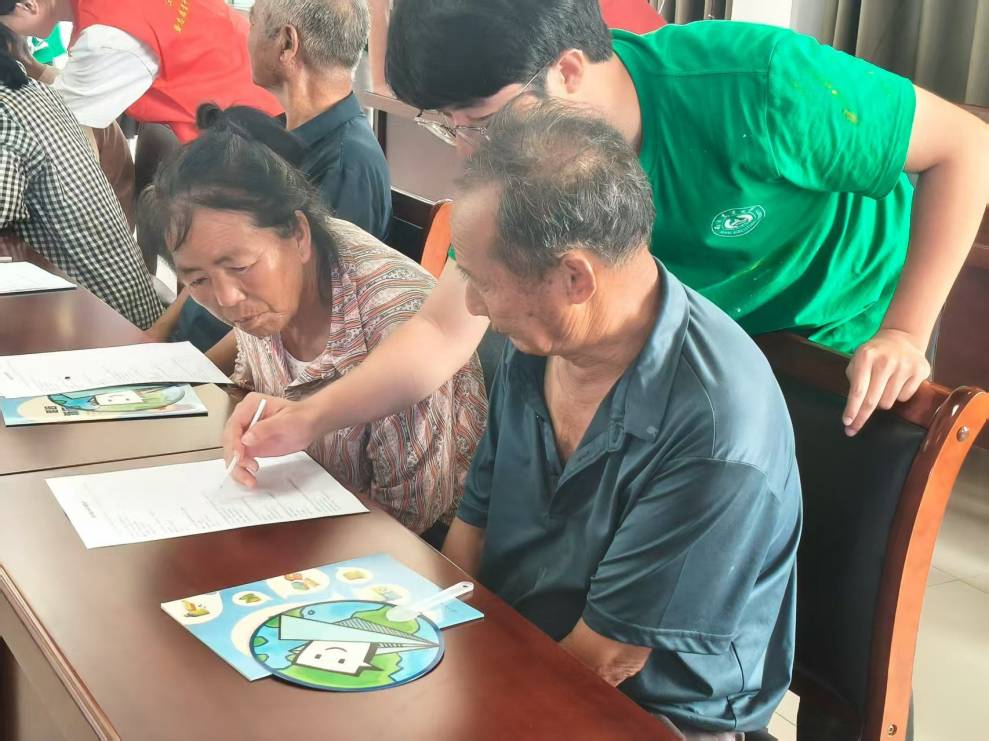 除了以畫筆裝點鄉村,實踐團還進行了多維度的實踐活動。團隊不僅聚焦生態理念普及,組織開展了面向徐莊村村民的垃圾分類專題宣講會;深入解讀分類方法,提升村民環保意識。而且同步進行問卷調查并發放環保知識傳單,廣泛采集村民意見,傳遞綠色生活信息,使環保理念更加貼近現實生活。