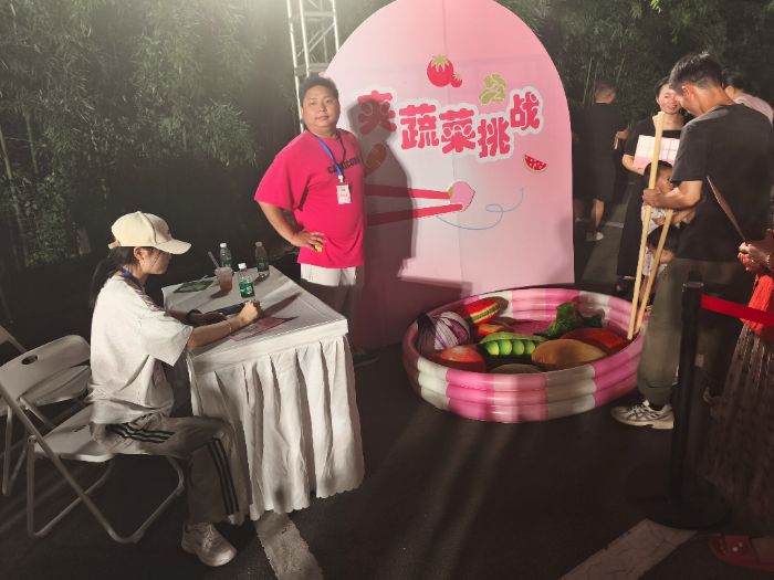 團隊成員作為志愿者熱心服務村民 幕后,套桃子、夾蔬菜的歡聲笑語里,是成員們用真誠服務換取的質樸歡顏。他們相互說著,年輕人做事就是利索;我們村大學生都來幫忙啦……當看到鄉親們臉上綻放如桃花般燦爛的笑容,當聽到他們不絕的掌聲與感謝,那一刻,所有的辛勞都化作了清澈的甘泉,滋養著成員們的心田。這不僅是一場演出,更是一次心靈的對話,一次青春的宣誓——以志愿精神為火種,點燃鄉村的活力與希望,讓青春的光華在服務奉獻中閃耀。