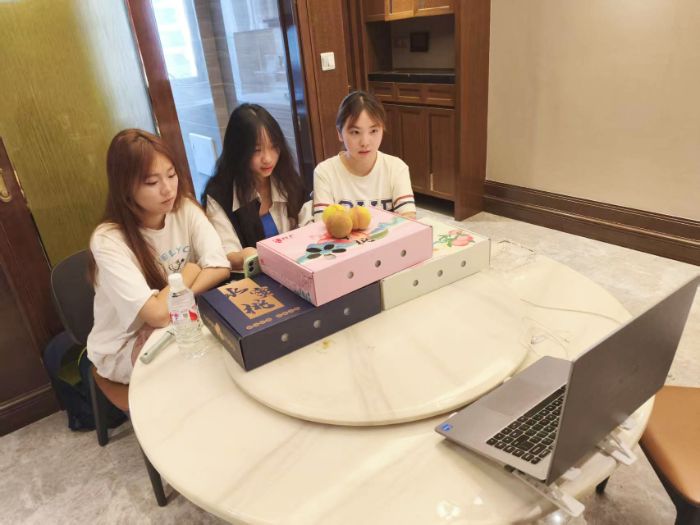 ·團隊成員室外直播宣傳水蜜桃 當訂單數字在屏幕跳動,當桃農眼角漾開由衷的笑意,成員們深知,這不僅是拓寬銷路的嘗試,更是以現代智慧為古老的饋贈插上數字翅膀,讓深藏山野的“玉露瓊漿”,乘著新時代的東風,香飄萬里,沁潤人心。這是科技賦能下,青年力量對傳統產業最深情的反哺。