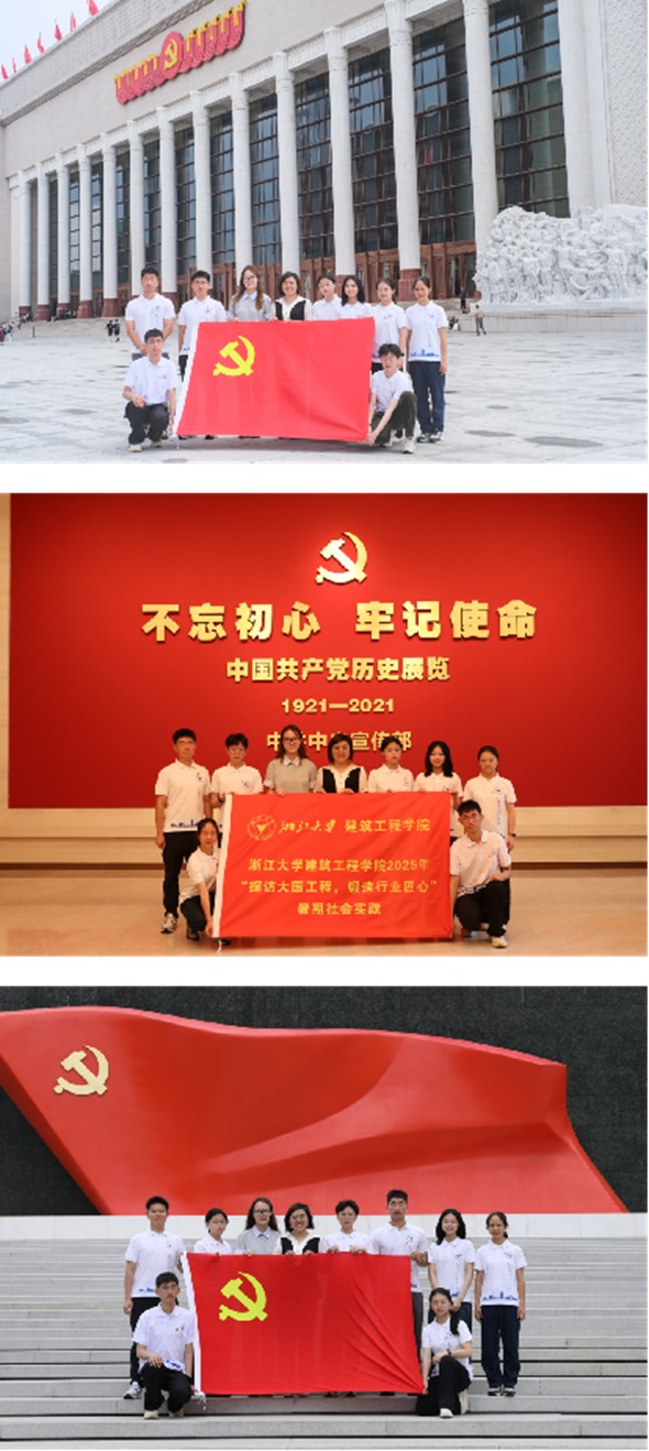 實踐團師生于建黨節走進中國共產黨歷史展覽館。這座以“不忘初心、牢記使命”為主題、沿著“站起來、富起來、強起來”歷史脈絡展開的精神殿堂,通過2500余幅珍貴圖片和4500多件文物實物,全景式展現了黨的不懈奮斗史、理論探索史和為民造福的光輝歷程。館內震撼的“飛越中國”全景沉浸式飛行影院項目,運用先進數字化技術引領同學們仿佛親臨革命圣地,俯瞰壯麗山河,飛掠中國車、中國橋、中國港等標志性超級工程集群,深刻體悟大國重器背后所凝聚的磅礴創新力量與卓越團隊協作精神。面對百年變局與風險挑戰,這次參觀不僅是一次對篳路藍縷百年奮斗史的深情回望,更成為一堂深刻的思想洗禮課。實踐團成員們深切認識到,作為新時代的未來建設者,必須從黨的歷史中汲取攻堅克難的決心和創新突破的勇氣,將紅色基因融入血脈;在新時代城鄉建設的“新長征路”上,不僅要錘煉扎實的專業功底,更需發揚精益求精的“工匠精神”,以毫米級的精度追求和技術創新,切實肩負起推動國家發展、貢獻青春智慧的時代使命與工程責任。