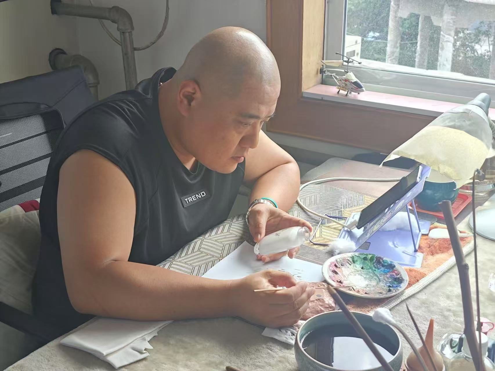 魯派內畫的體驗堪稱 “指尖上的修行”。當特制筆尖探入鼻煙壺狹小的空間,簡單的線條都變得歪歪扭扭,對比展柜中匠人筆下的山水樓閣,才深知 “毫厘之間見乾坤” 的背后,是數十年如一日的堅守。走進小學課堂,看孩子們用稚嫩的小手握著畫筆,在壺內畫出稚嫩的線條但滿臉認真時,忽然懂得傳承的真諦:不僅是技藝的延續,更是讓文化的種子在新一代心中生根發芽。
