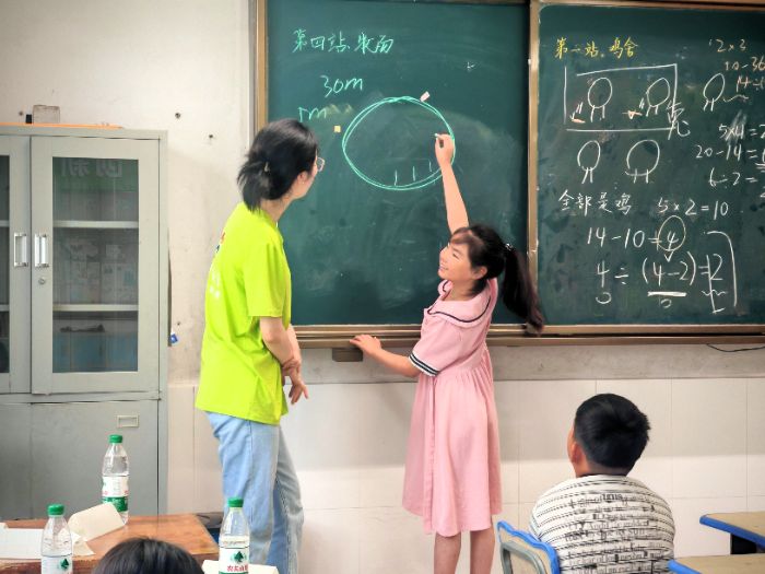 圖為服務隊為學生講解數學知識及其應用。王彤攝