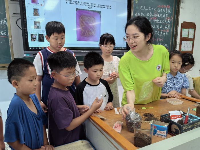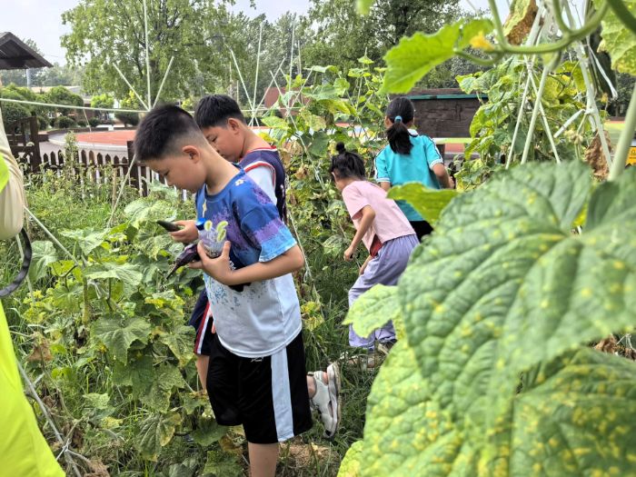 依托服務地“少年農學院”實踐基地,團隊開設生物知識講堂與田間實操課程。志愿者們通俗講解植物器官構造、生態系統原理后,帶學生走出教室,走進農田,指導他們觀察黃瓜、茄子等作物的生長狀態,體驗采摘樂趣。讓學生在親手實踐中直觀感知作物形態,深入理解生長規律,讓知識與實踐真正落地相融。
