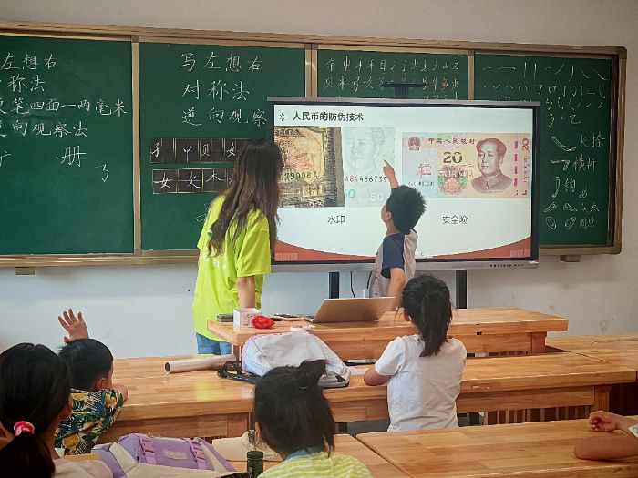 活動前,志愿者追溯貨幣從“貝殼交易”到“電子支付”的演變史,深入淺出地解析等價交換、成本核算、利潤計算等經濟學原理,并指導學生手繪仿五銖錢。隨后“禾風集市”正式開張,學生分組擺攤,為手工藝品合理定價,主動與“顧客”議價交易。在一來一往的互動中,抽象的數學知識與經濟原理變得可感可觸,學生們真切體會到勞動成果向商品價值的轉化,財商意識與實踐能力也得到扎實鍛煉。