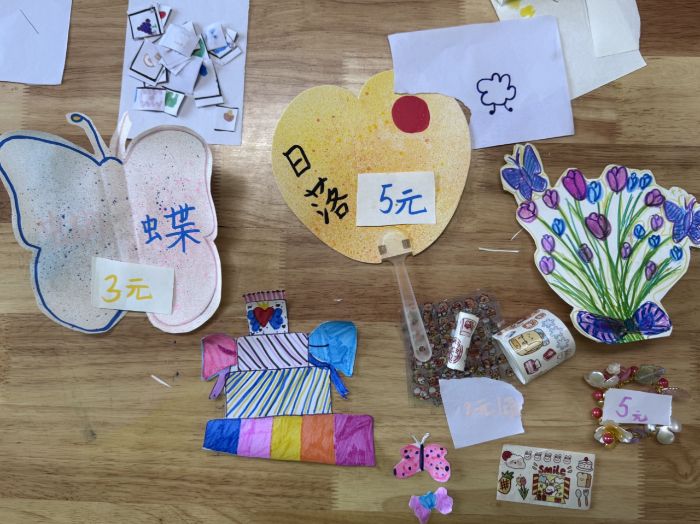 圖為孩子們在禾風集市中定價議價并自制貨幣。孫婧煜攝