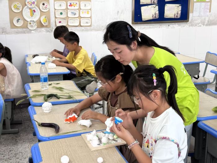 圖為服務隊開展植物繪畫和粘土制作課程。王彤攝