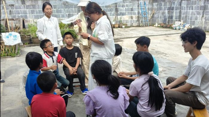 在校園內(nèi),學(xué)生們?cè)谡n堂上使用普通話頻率較高,課后基本不使用普通話,對(duì)這一情況的了解,為實(shí)踐團(tuán)隊(duì)后續(xù)開(kāi)展“推普”活動(dòng)奠定了基礎(chǔ)。實(shí)踐團(tuán)隊(duì)召集村寨內(nèi)的學(xué)生,對(duì)其進(jìn)行“聶耳與國(guó)歌的故事”宣講活動(dòng),旨在讓更多的學(xué)子了解聶耳,了解《義勇軍進(jìn)行曲》,為實(shí)現(xiàn)“行走的思政課”這一目標(biāo)做出努力。