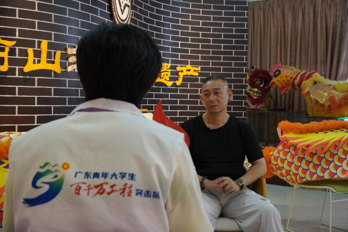 前山鳳雞舞作為省級非遺項目,有著深厚的歷史文化底蘊,實踐團成員專訪了鳳雞舞傳承人湛嘉威。在訪談中,湛老師系統梳理了鳳雞舞在嶺南地區的起源及發展,分享了項目在當代傳承中面臨的挑戰,并揭秘道具精妙工藝與表演的獨特藝術精髓。這場面對面的交流,為青年學子完整呈現了鳳雞舞的豐富內涵。為擴大非遺影響力,在前山市民藝術中心非遺展廳,實踐團推出鳳雞舞專題線上直播宣講,直播內容聚焦該非遺項目的歷史背景、形象文化寓意及核心表演技巧。據統計,本次直播吸引逾500人次在線觀看,收獲點贊超3萬次。