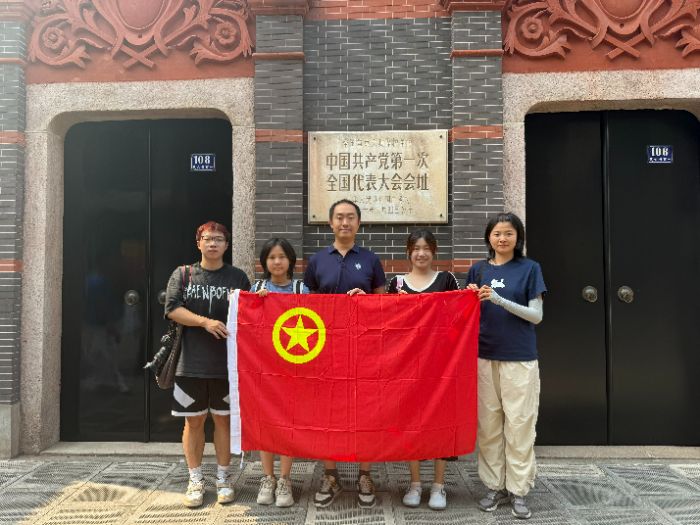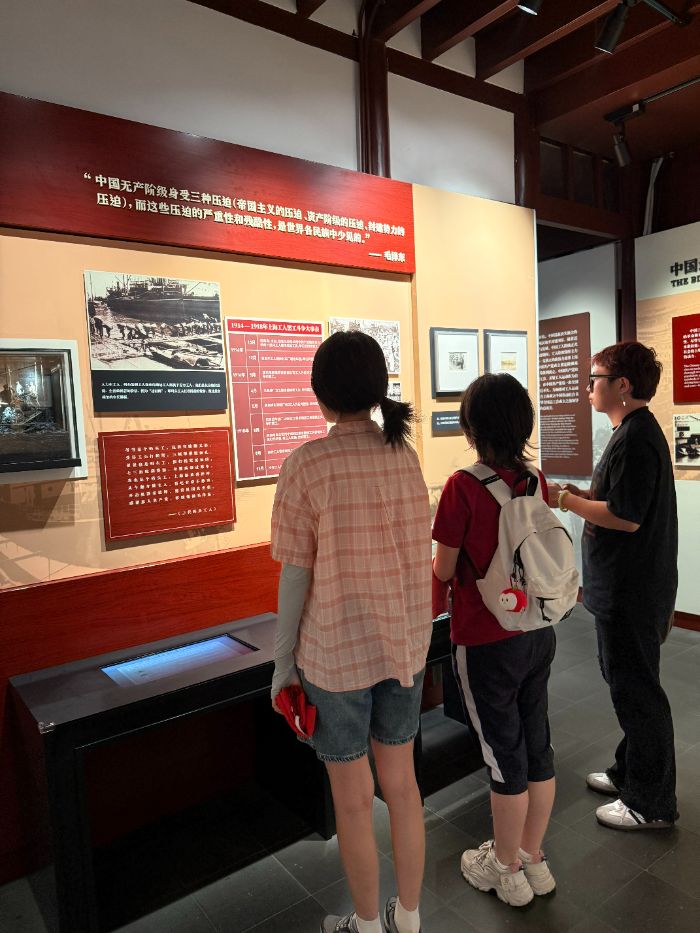 本次實(shí)踐過(guò)程中,團(tuán)隊(duì)來(lái)到中共一大、二大會(huì)址,重溫中國(guó)共產(chǎn)黨誕生的偉大時(shí)刻。在一張長(zhǎng)桌、一部黨章、一臺(tái)油印機(jī)中感知信仰的溫度。一大會(huì)址紀(jì)念館中《第一個(gè)綱領(lǐng)》的鉛筆劃痕,二大會(huì)址紀(jì)念館條約表上的紅筆圈注,無(wú)不表露出革命先驅(qū)們?yōu)槊褡褰夥哦X醒的熾熱靈魂。在中國(guó)社會(huì)主義青年團(tuán)中央機(jī)關(guān)舊址,外國(guó)語(yǔ)學(xué)社的課桌與中俄通信社的文稿見證了一百多年前馬克思主義如何在青年心中播下火種。這些歷史細(xì)節(jié)生動(dòng)詮釋了“初心”的模樣——它是綱領(lǐng)上樸拙的字跡,是油印機(jī)徹夜的轉(zhuǎn)動(dòng),是青年學(xué)子追求真理的熾熱目光。作為新時(shí)代青年,我們當(dāng)以革命先輩為鏡,將這份“寫在紙上、握在手里”的信仰之力轉(zhuǎn)化為“扛在肩上”的擔(dān)當(dāng)之志,讓青春脈搏始終與黨的使命同頻共振。