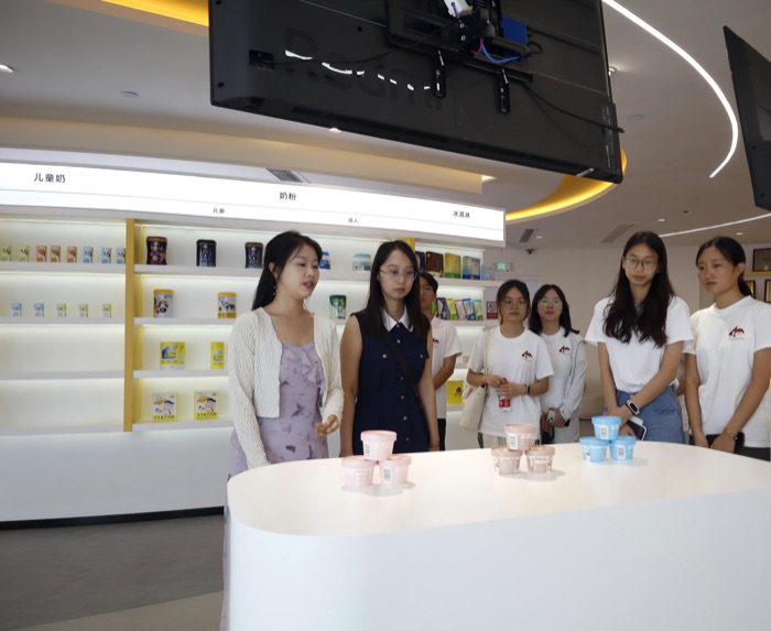 創新脈動:運河精神澆灌企業沃土 運河所孕育的開放與創新精神,深深根植于沿岸企業的成長基因。翌日上午,實踐團探訪了從杭州本土崛起的乳業企業——認養一頭牛控股集團。江南大學商學院校友、供應鏈負責人戴志倩分享了企業的破局之道。她坦言,初創期面臨同質化競爭時,是運河“匯聚資源、打破邊界”的開放思維點亮了前路。“運河貫通南北,我們則致力于連接牧場與消費者。”戴志倩解釋道。由此誕生的“認養”模式,通過數字化平臺讓消費者深度參與從奶牛養育到牛奶配送的全過程,并與運河沿線科研力量緊密合作提升品質,成功開辟了市場新藍海。