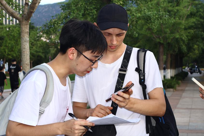 圖為溫州醫科大學巾幗筑夢暑期社會實踐團成員進行問卷調研 韓香攝