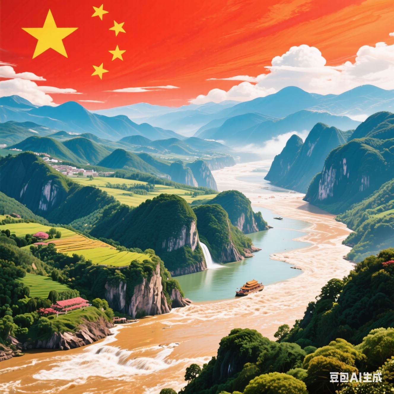 而金融 3 班左繹彬用 AI 繪制的 “祖國繁榮山河圖”,將五星紅旗、奔騰江河與田園村落融入畫面,用科技筆觸傳遞家國情懷。