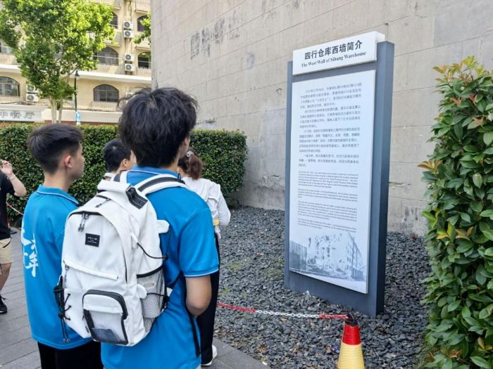 走近四行倉庫,墻面上的炮痕依然觸目驚心。西墻高聳之處,那些巨大的孔洞無聲復(fù)刻著日寇炮火的獰厲,是戰(zhàn)爭被凝固的疤痕。館內(nèi)陳列八百壯士影像與遺物,那些年輕堅毅的面孔、簡陋的裝備,在歷史塵煙中愈發(fā)澄明——絕境中,民族魂魄凜然不屈。“八百壯士”的吶喊穿越時空,在展廳里呼嘯穿行,令隊員們仿佛直面那烈火淬煉的脊梁,在熱血奔騰中重獲勇毅擔(dān)當(dāng)。