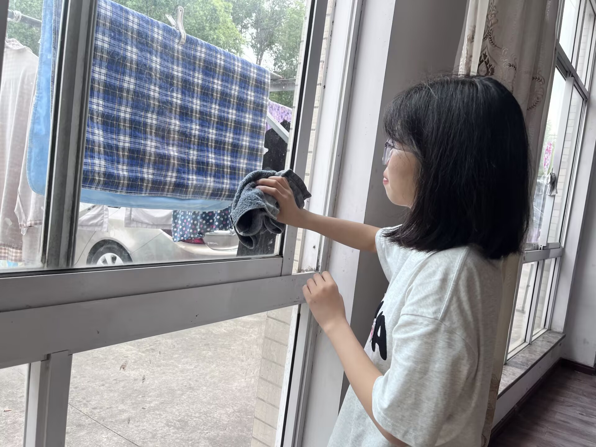 隨后,我們迅速分組投入到清掃工作中。養(yǎng)老院的公共區(qū)域因長期使用,角落堆積著不少灰塵,窗戶玻璃也蒙上了歲月的痕跡。我和伙伴們拿著掃帚、抹布、水桶等工具,從擦拭走廊扶手、清掃落葉開始,逐步向老人居住的樓層延伸。夏日的悶熱讓汗水不斷滑落,但大家誰都沒有抱怨,反而在協(xié)作中找到了樂趣。有人打趣著“把窗戶擦得锃亮,老人們就能看得更清楚外面的風(fēng)景”,有人分享著清理出的舊物故事,歡聲笑語回蕩在養(yǎng)老院的每個(gè)角落。在打掃老人房間時(shí),我們格外小心,仔細(xì)整理被褥、擦拭桌椅,盡量不打亂老人原有的生活習(xí)慣。經(jīng)過數(shù)小時(shí)的努力,養(yǎng)老院的面貌煥然一新,窗明幾凈的環(huán)境讓老人們紛紛豎起大拇指。