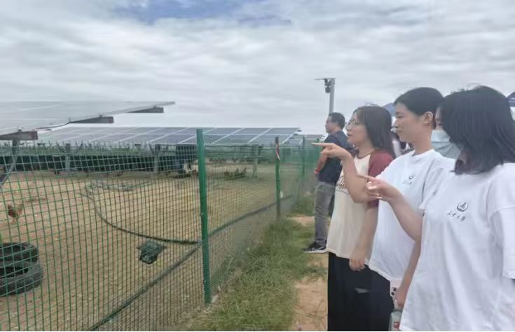 生態優先·向“綠”而興為加強大學生對綠色發展理念和生態可持續發展戰略的學習意識 ,實踐隊前往銅川鎮光伏基地。實踐隊實地考察了由煤礦沉陷區改造而成的“藥光互補”項目,于光伏電板下投養家禽,同時板下種植沙棘、苜蓿等作物的進行生態修復,實現土地資源的高效利用,從而使居民生活水平得以穩步提高。此外,實踐隊還赴泊爾江海子鎮柴登村,參觀了“農光互補”產業園區,學習光伏發電與家禽養殖相結合的綠色發展經驗,感受到柴登村推動農業設施向標準化、規模化發展的決心與信心。