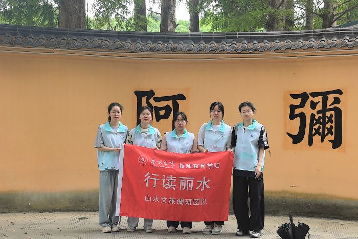 調研前期,團隊成員廣泛查閱與麗水市相關的游記、地方志等文獻資料,搜集整理詩歌700余首。隨后,團隊赴三巖寺、南明湖等地,進行實地考察,記錄了相關自然風貌、文化地標及旅游開發現狀,并結合詩歌文本進行古今景點發展現狀對分析,為后期的文化探索與傳播奠定基礎,從而更好地促進麗水市山水文化發展。