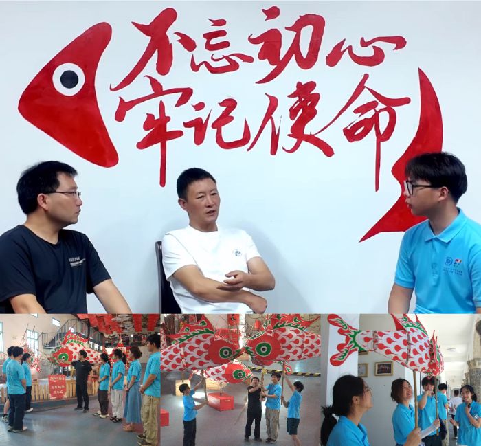 圖為實(shí)踐團(tuán)成員和汪老師交流魚燈技藝學(xué)習(xí)心得場(chǎng)景