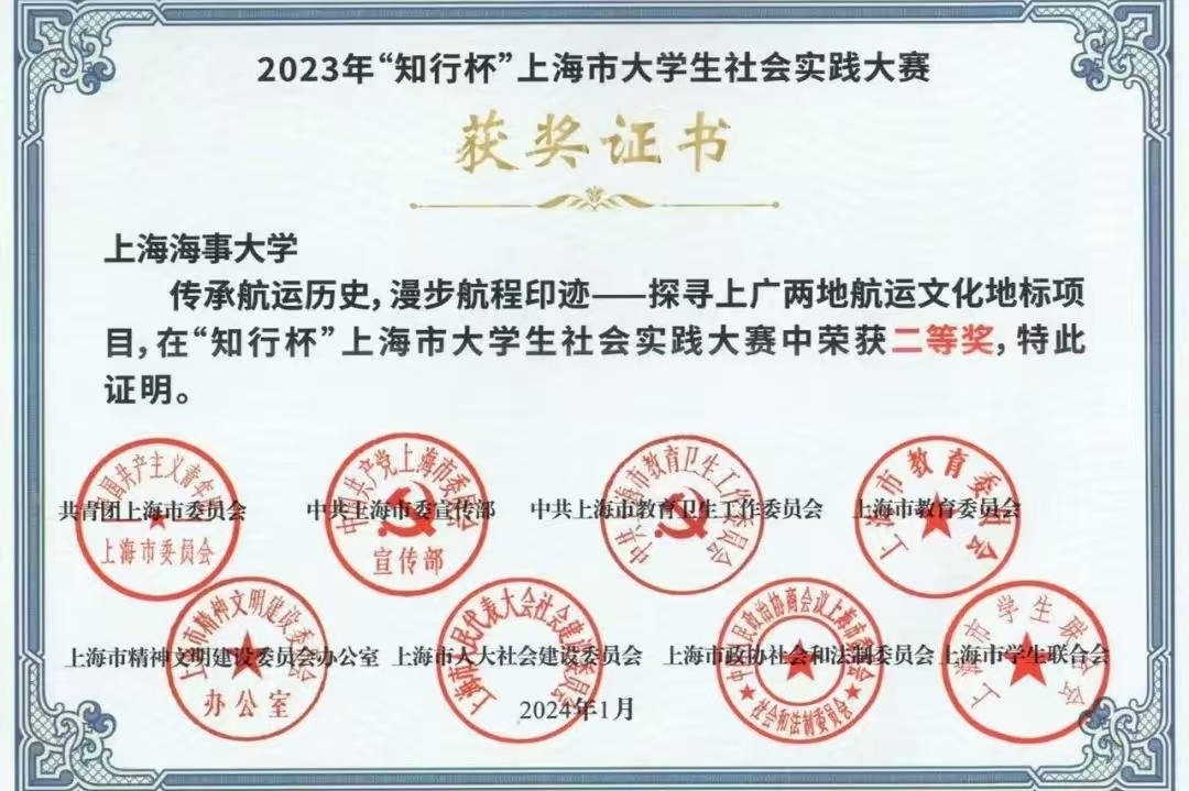 經(jīng)過三年持續(xù)深入鉆研,團隊對豐富的研究成果與實踐經(jīng)驗進行系統(tǒng)梳理,最終凝練形成22萬字的詳實調(diào)研報告,為郵輪產(chǎn)業(yè)發(fā)展提供了基于青年視角的思考。同時,團隊系統(tǒng)收集整理了郵輪從業(yè)者的珍貴口述資料,完善了隊內(nèi)的航運人口述史庫,為行業(yè)留存了寶貴記憶。團隊的扎實工作獲得了各方認可,先后榮獲2023年“知行杯”上海市大學生社會實踐大賽二等獎、2024年上海海事大學“千企百港調(diào)查”大學生社會實踐調(diào)研專項一等獎及優(yōu)秀調(diào)查報告三等獎等多項榮譽。