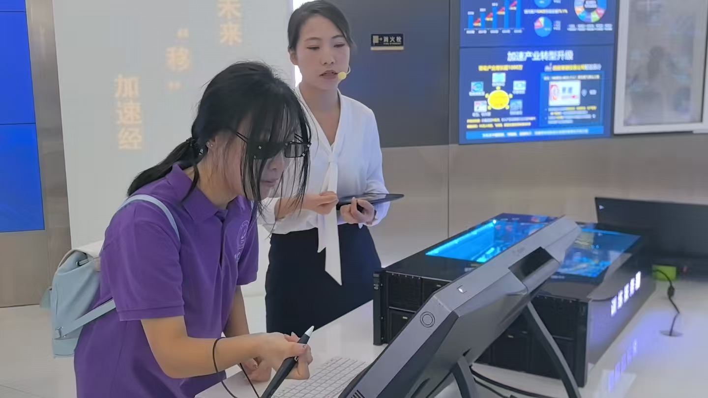 為探尋5G技術從頂層設計到民生角落的滲透路徑,實踐隊走進了中國移動5G聯合創新中心。隊員們圍在5G+高清會議系統前,親身體驗城鄉信號的無間斷穿透——即便連線偏遠縣域,畫面依舊清晰流暢,聲音毫無延遲,讓大家真切感受到“天涯若比鄰”的技術魔力。