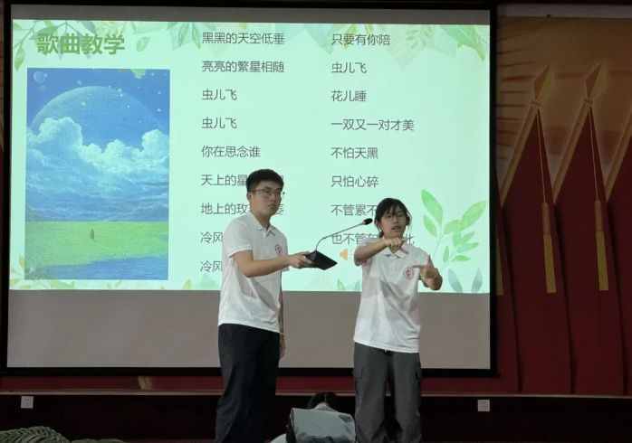 “手語會開花”課堂上,實踐團以童謠《蟲兒飛》為創意載體,精心設計趣味教學:教孩子們用手掌模擬“夜空低垂”,用指尖輕點再現“繁星閃爍”,把“你好”“謝謝”等手勢化作連接有聲與無聲世界的紐帶。當夕陽下,孩子們舉著小手,用略顯笨拙的動作同步演唱童謠時,實踐團成員深切感受到,這場由團隊主導的手語啟蒙,不僅播撒了語言交流的種子,更讓“尊重差異、傳遞溫暖”的理念扎根童心,成為一堂兼具溫度與意義的成長課。