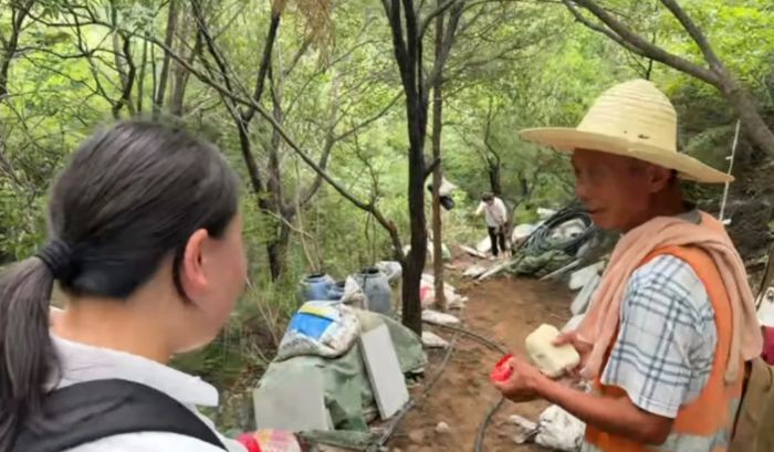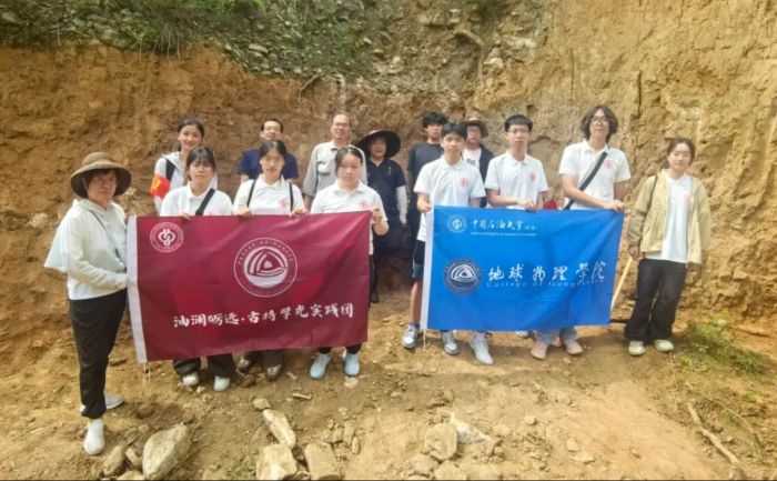 圖為實踐團成員與工人交流+周思衡攝 同時,團隊精準摸清棧道建設進度與后續規劃,為后續對接資源、助力古將村旅游發展扎實埋下伏筆。隨后,實踐團聯合國家地震局的專家在古將村共同進行斷層掃描作業、采集土樣及分析地震成因:在野外采樣點,專家現場講解板塊運動、地震波傳播知識,指導成員們科學選址、分層采集土樣、規范封裝樣本。從“書本理論”到“實地操作”。成員們不僅錘煉了專業技能,更結合古將村地質構造,為村莊生態保護、基礎設施建設提供了初步建議。