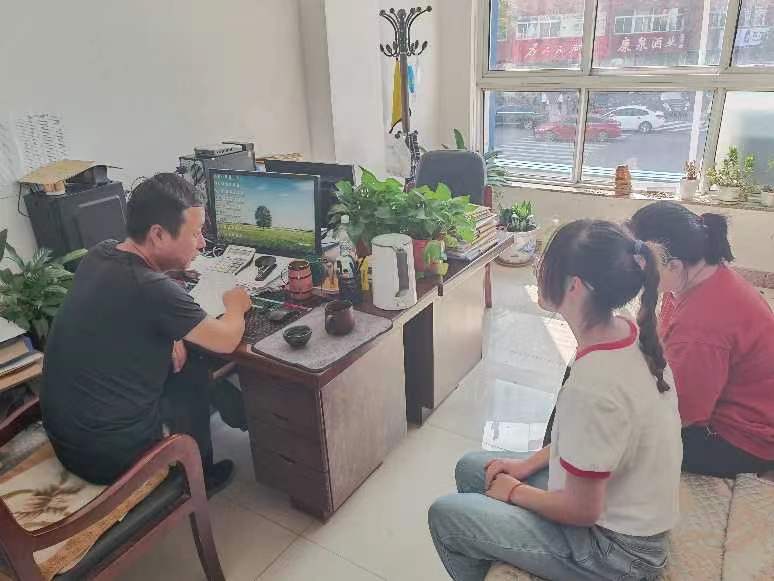 (圖為遼寧朝陽志愿者們采訪當(dāng)?shù)貧埪?lián)負(fù)責(zé)人。 光盲之路社會(huì)實(shí)踐團(tuán)隊(duì) 白天宇 攝)
