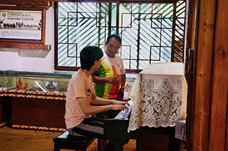 (圖片2:實踐團成員與李石開老師即興合作演繹民族歌曲)