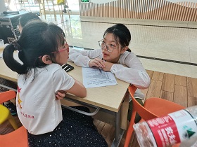留校實踐團成員和“小候鳥”們圍坐在一起,隊員們根據采訪問題,與“小候鳥”進行了親密的溝通交流,并詳細地記錄了采訪的內容。有些小朋友們在最開始進行交流時還有些靦腆害羞,不敢表達,但在隊員們的耐心引導下,還是漸漸敞開了心扉,愿意跟隊員們表達心里的一些想法。隊員們在采訪的同時,也同小朋友們分享自己的童年趣事,拉近與小朋友之間的距離,調節采訪的氛圍,讓現場充滿了歡聲笑語。通過跟“小候鳥”的溝通交流,隊員們感受到了他們對生活的熱情,對父母的關心與愛;同時,也驚嘆于他們的乖巧勤勞。他們有時候揣著心事卻無人分享,父母無法常常陪伴在身側,但他們對父母是體諒的,是理解的。暑期對于“小候鳥”們來說是非常珍貴的一段時間,他們熱烈地渴望著父母的陪伴。除此之外,根據隊員們的了解,“小候鳥”們有著較好的飲食習慣,挑食的習慣不常見,注重攝入牛奶、果蔬。
