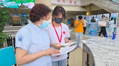 除了將對艾滋病的理解融于藝術活動中,實踐小隊還前往連云港市第二人民醫院和婦幼保健院開展導醫導診相關活動,在幫助醫患的同時還在醫院中向醫生護士們學習防艾相關知識,以便更好的向大眾宣傳。