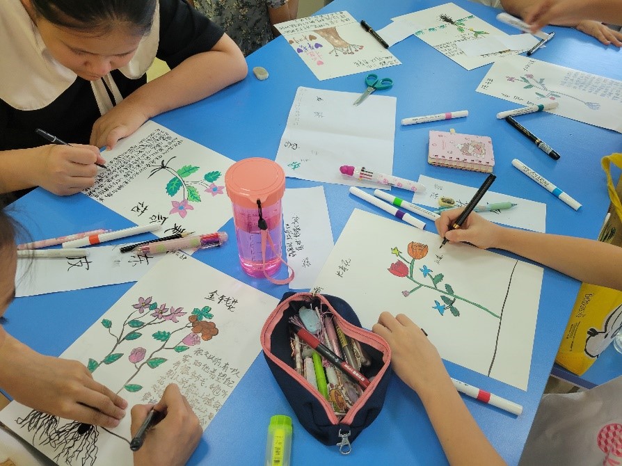 習近平總書記指出,“中醫藥學凝聚著深邃的哲學智慧和中華民族幾千年的健康養生理念及其實踐經驗。”為弘揚中華優秀傳統文化,傳承發展中醫藥文化,7月7日上午,實踐團開展“神奇的中草藥”課程,帶領同學們跨越千年進入古樸的中醫藥世界,讓同學們“品茶識藥”,以“長壽草”為題,引導同學們發揮想象力,以畫筆為媒,創造心目中的“長壽草”,極具意趣。“童心逐夢”實踐隊通過開展內容豐富、形式多樣的中草藥課程,加強中醫藥文化的教育普及程度,充分發揮中醫藥文化的“鑰匙”作用,助力弘揚中華優秀傳統文化,薪火相傳,永綻風華。