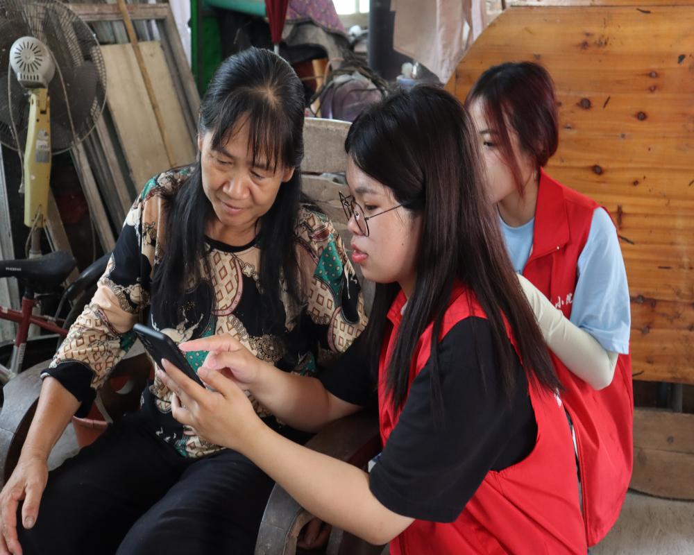 實踐隊隊員在下河村入戶訪談,與當地村民進行親切對話,了解下河楊桃產業發展現狀和果農面臨的實際問題和困境。隨后,實踐隊隊員為走訪的果農送去規范的果蠅誘捕器并示范使用操作方法,耐心為果農解惑答疑。同時,實踐隊員成為科普信息員,為農戶介紹“科普中國”APP,手把手教授用手機端瀏覽科普中國,從而使農戶從中獲取有益于農業發展的各類信息,真正成為緊隨時代發展的“新農人”、鄉村振興的主力軍。