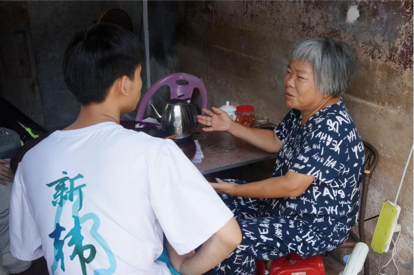 為貫徹落實黨的二十大精神,助力鄉村振興戰略,解讀鄉村文化和文明鄉風的歷史傳承。佛山科學技術學院新韓路護江隊于7月8日到龍湖古寨進行實地調研。當隊員們探訪明朝嘉靖年間的御倭英雄劉子興的宅第“方伯第”時,受到了居住于此的阿婆的熱情招待。隊員們跟阿婆坐在一起閑聊,時不時傳來陣陣歡樂的笑聲。阿婆還拿出了正宗的鳳凰單叢茶出來招待隊員們,讓大家都品嘗到了最純正的潮州鳳凰茶。在交談之際,我們不經意間了解到阿婆的生活比較困難。隊員們隨即決定,購置一些生活用品給予阿婆,阿婆十分感動,拉著隊員的手,表示出由衷的感謝,隨后隊員們和阿婆道別。