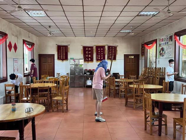 圖 2 實踐隊員們打掃餐廳垃圾 倪都 攝