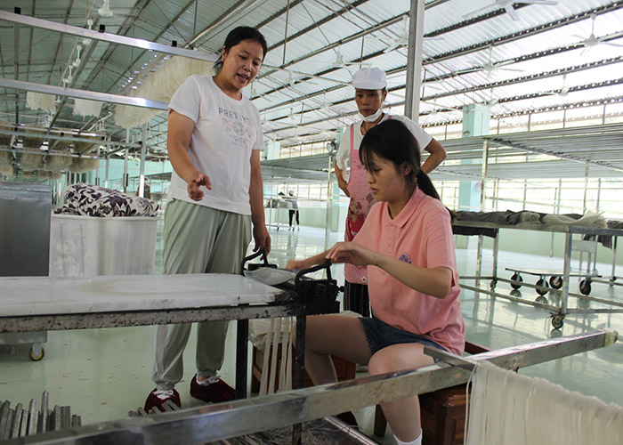 緊接著,調研小隊的成員們在燕姐的指引下來到郁山晶絲苕粉制作工廠,并體驗到