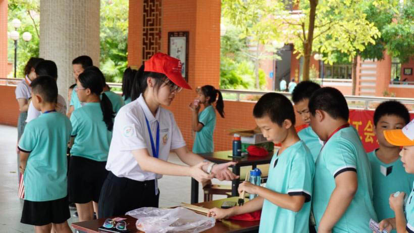 隊伍同時還打造了豐富全面的“第二課堂”,開設“百變扭扭棒”“布里生花”“縱橫交錯的自然之美”“留住夏天的顏色”“環(huán)保小衛(wèi)士”等手工課堂,將扎染、竹編、拓染等非遺技藝帶入教室,以玩促學,提高學生對中國非遺文化的認知,讓學生領略非遺之美。